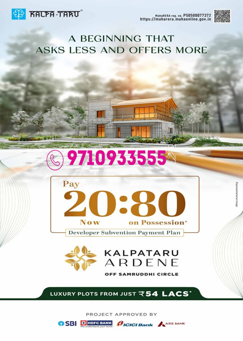 Welcome to Kalpataru Ardene Nagpur Type Plot sizes Price Plot 1300 Sq.Ft. To 1500 Sq.Ft. 54 Lacs Onwards Plot 1500 Sq.Ft. To 1800 Sq.Ft. On Request Plot 1800 Sq.Ft. To 2100 Sq.Ft. On Request Plot 2100 Sq.Ft. To 2400 Sq.Ft. On Request